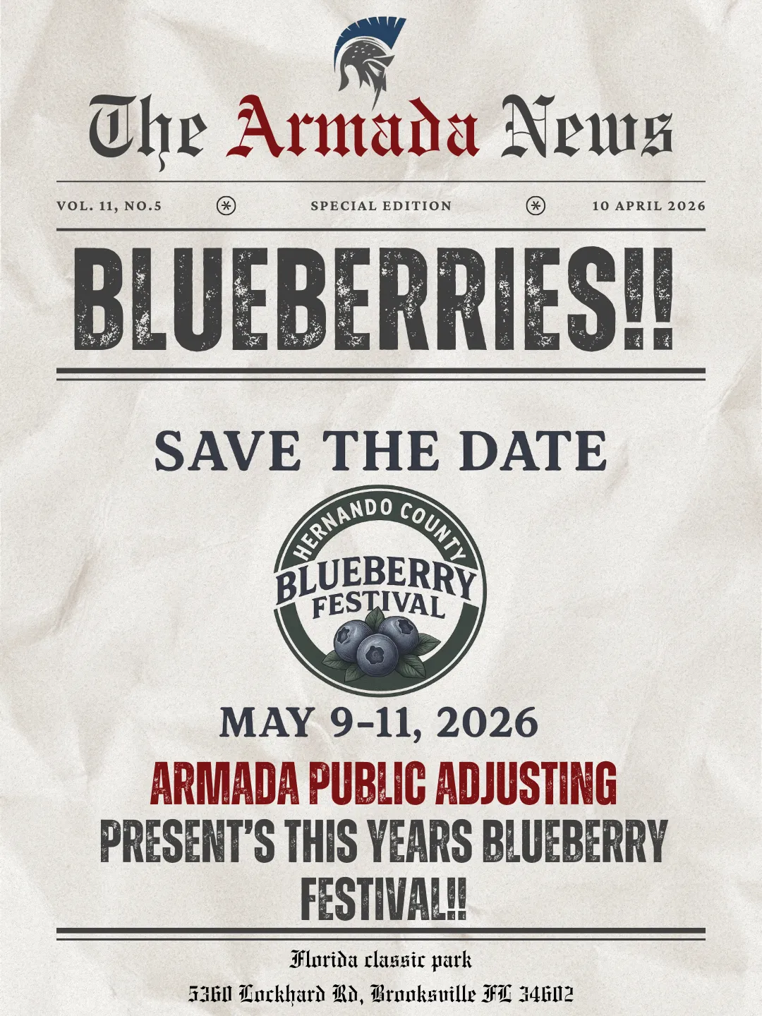 Proud sponsor of the Hernando county Blueberry festival 2026!!